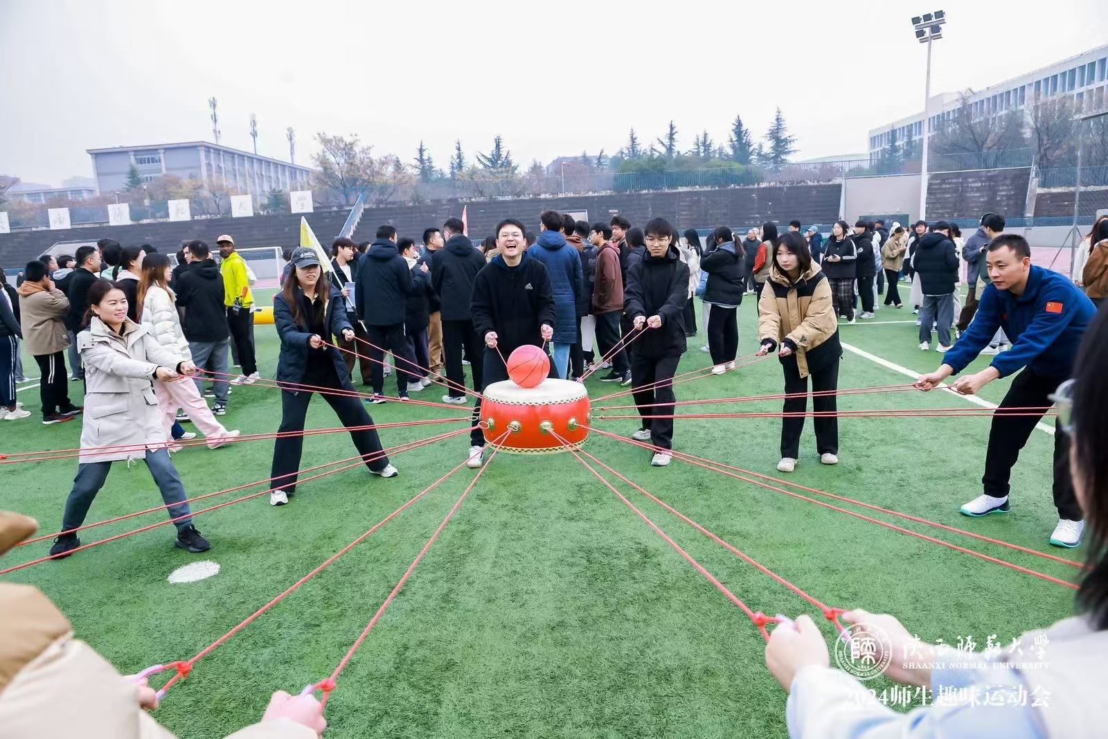 师大新闻网讯11月23日下午,威尼斯官网“八秩荣光 强师报国”师生趣味运动会在长安校区田径场举行。活动由学校体育工作委员会主办,体育学院、校工会(妇委会)、党委教师工作部、党委学工部、党委研工部、团委承办,全校千余名师生参加了活动。