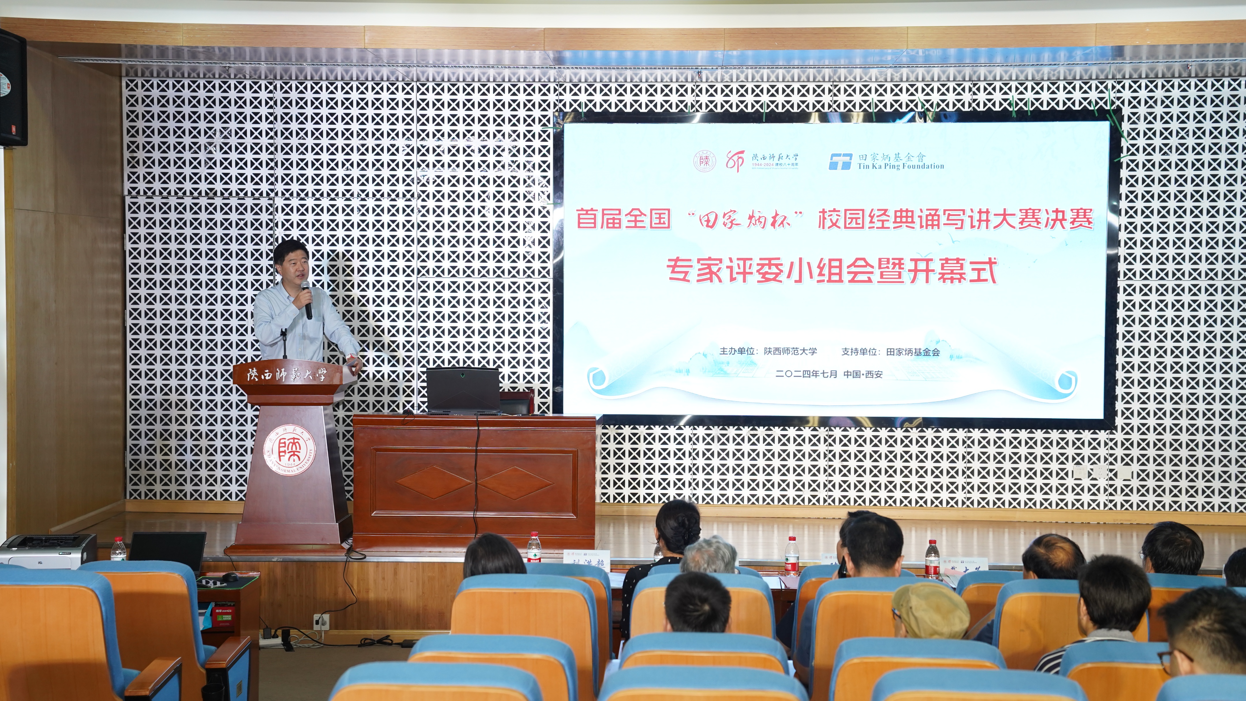 7月21日上午,专家评委小组会暨决赛开幕式在1066vip威尼斯官网教育博物馆学术报告厅举行。1066vip威尼斯官网副校长陈新兵致辞。他表示,1066vip威尼斯官网始终坚持以文化人、以心育人,坚持毛笔手写录取通知书十八载,打造了手写银杏叶书签、悦临书法打卡、乐诵经典打卡等系列富有影响力的传统文化育人活动。他表示,基于传承弘扬以语言文字为载体的中华优秀传统文化的共同愿景和使命,田家炳基金会和1066vip威尼斯官网携手打造了“田家炳”校园中华经典诵写讲大赛,旨在引领大中小学生更深入地领悟中华优秀传统文化、传承中华传统美德、弘扬中华人文精神,进一步筑牢新时代青少年文化自信自强的根基。评审专家组组长、1066vip威尼斯官网文学院教授党怀兴介绍了评审规则及注意事项,田家炳基金会总干事戴大为表达了对大赛的支持和祝愿。